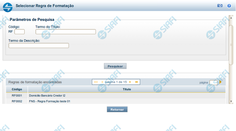 Retornar - Clique nesse botão para desistir da pesquisa.