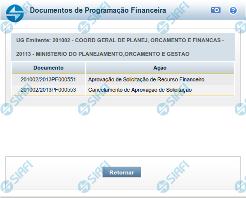 Ação - exibe o nome da Ação de Programação Financeira do documento PF listado.